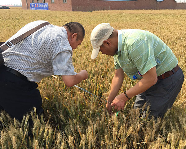 权威性测产:河北省土肥站王站长、作物研究所杨所长、技术推广中心李主任、藁城区土肥站杜站长亲自测产