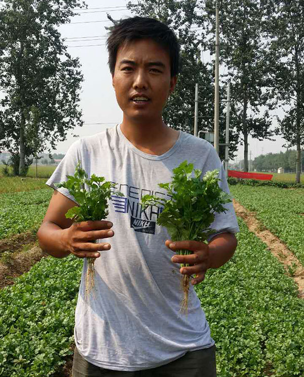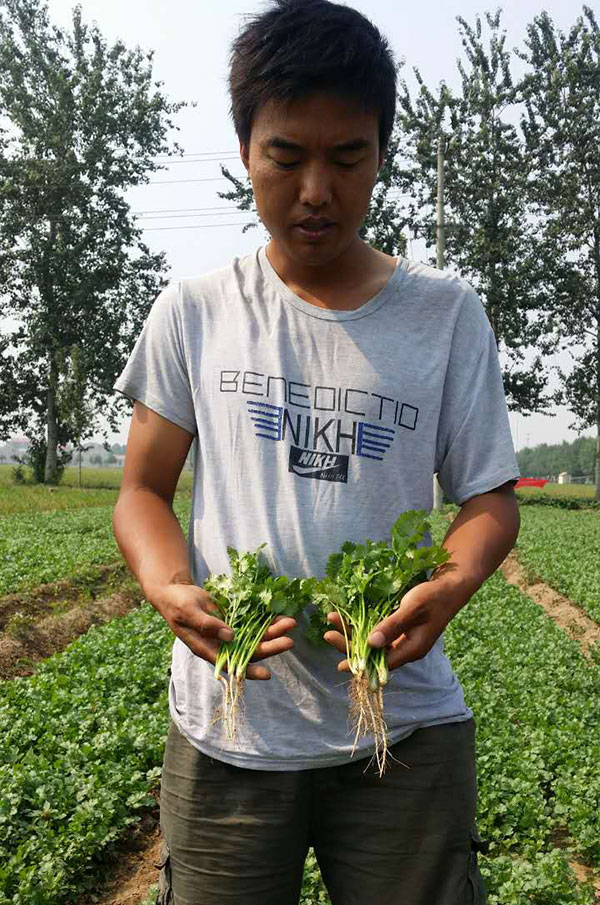 这是高邑侯家庄王胜林家的香菜的对比照,电话13653382264,冲了一次沃丰地宝生根,喷了一次植物疫苗