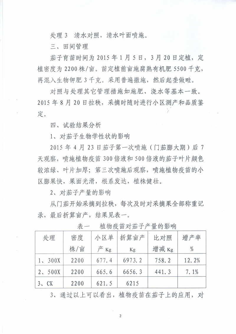 茄子增产报告
